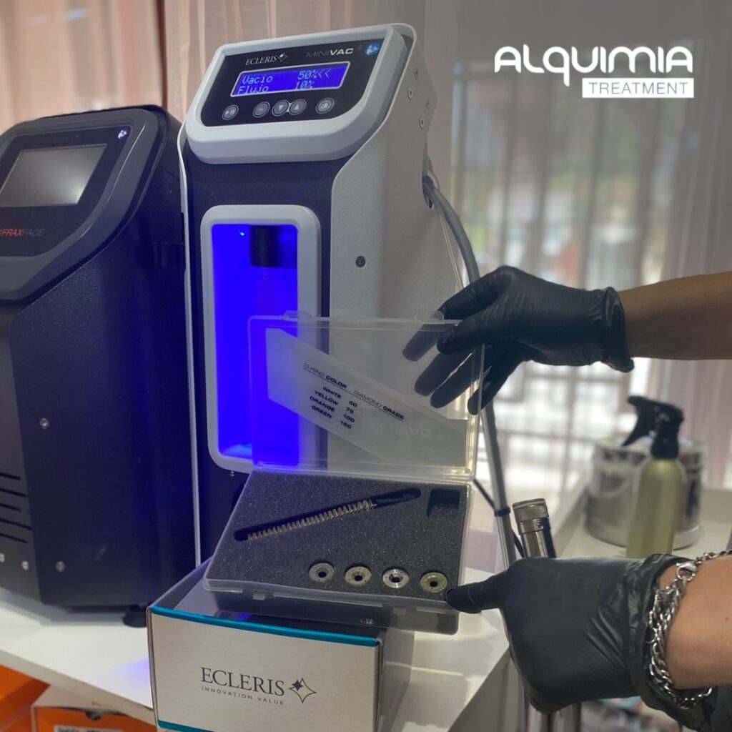 Alquimia Treatment es sumamente innovador al ofrecer la aplicación de un amplio rango de vehículos y nutrientes al mismo tiempo que se realiza la limpieza e hidratación con las puntas de diamante.